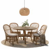 Rattan Dining Set, handcrafted from premium natural rattan with rounded vertical slat design, perfect for creating a cozy and inviting dining space with organic charm.