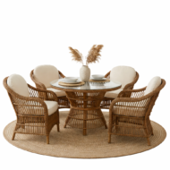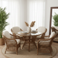 Rattan Dining Set, handcrafted from premium natural rattan with elegant pedestal base design, perfect for creating an intimate and sophisticated dining experience.